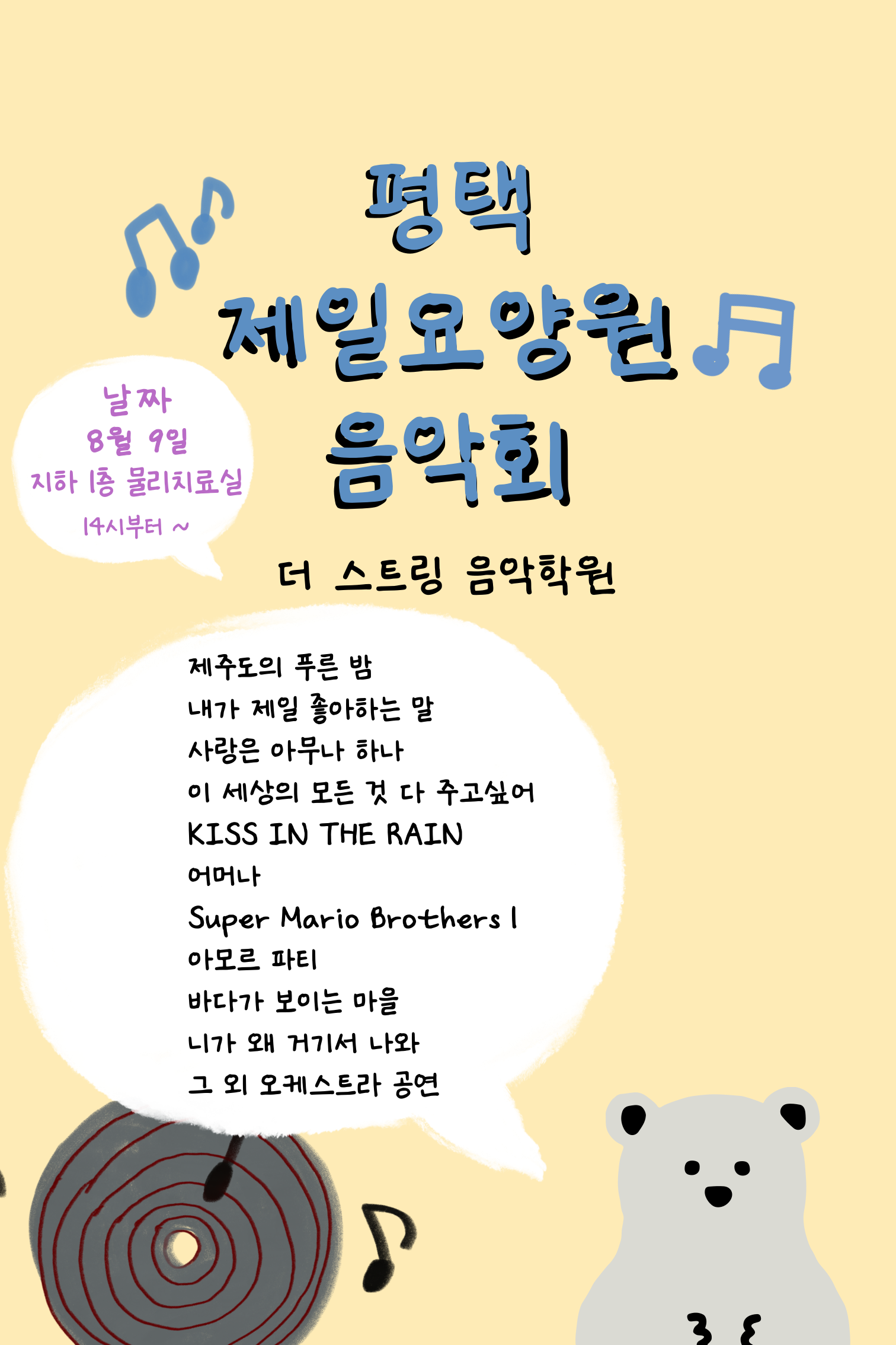 | 제목 | 평택제일요양원 - 08월 09일 작은 음악회 안내 | 공지일 | 2025.07.28 |